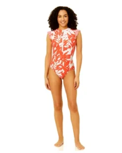 Anne Cole – Women’s Flutter Sleeve Zip Up Rash Guard One Piece Swimsuit Coastal Palms