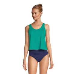 Lands’ End Women’s Chlorine Resistant V-neck One Piece Fauxkini Swimsuit Faux Tankini Top