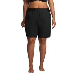 Lands’ End Women’s 9″ Quick Dry Elastic Waist Modest Board Shorts Swim Cover-up Shorts With Panty