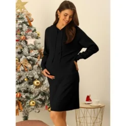 Seta T Womens’ Casual Pullover Sweatshirt Long Sleeve Hoodie Dress With Pockets