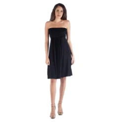 This fun knee length bandeau top mini dress can be dressed up or down for any occasion. Perfect for the warmer months, this dress features a slim fit empire waist and soft flare hemline that will compliment any figure. Made from a comfortable stretch material. Rayon Spandex Knit.