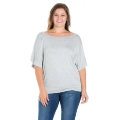 This dolamn style plus size top is a comfortable and stylish piece that can be dressed up or down for any occasions and perfect for all seasons. Made with an overall loose shape that is finished with a thick band at the hem and sleeves. Designed with a wide boat neckline and wide elbow length sleeves. Pair this long tunic top with shorts and flats or dress it up with pants and heels. Made in the USA from a comfortable stretch material. Rayon Spandex Knit.