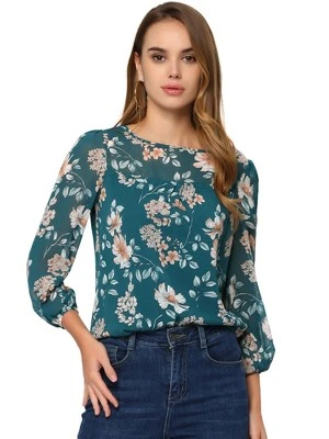 It flatters with sheer sleeves to enhance the charm of this floral blouse. Wear it with your black pants and high heels for a full casual look. An endlessly wearable style, a round neck, and a retro floral print are a good fashion of casual elegance. A summer-weather essential, our elegant summer blouse is cut with a long sleeve and the semi-sheer chiffon fabric.