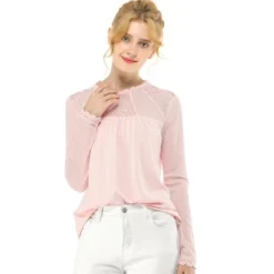 The floral lace makes this gauzy top a romantic night-out option. Floral embroidery embellishes the lace of a romantic blouse with a ruffled neck trim. Turn on the charm in this lacy blouse cut with a keyhole back and delicate frilled cuffs. Timeless charm evokes itself in this homespun blouse that’s decorated with lace. Lacy sleeves add texture and movement to a top that exemplifies vintage refinement. Made of airy eyelet lace, this swingy top nails that whole peasant thing with pretty shirring neck.