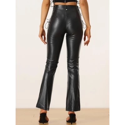 - Faux Leather Fabric, slightly stretchy, Lace Up Decor, Hollow Out, Drawstring Front, Straight Legs