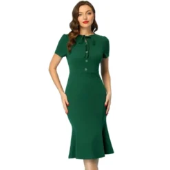 - Fish Tail Hem, High Waist, Short Sleeved, Vintage Pencil Dress for Women
