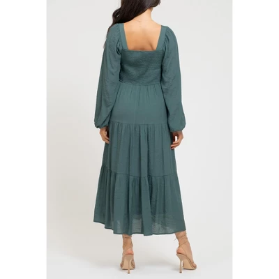 Introducing August Sky’s latest addition to our collection: an updated version of our beloved smocked tiered sleeveless dress, now available in long sleeves. This chic dress features a square front and back neckline, adding an elegant touch to your ensemble. The shoulders are subtly enhanced with a touch of puff, while the balloon sleeves offer a stylish flair. The pleated 3-tiered design provides just the right amount of movement, and it’s lined for optimal comfort. Complete your look by pairing this versatile dress with your favorite shoes and accessories, perfect for any occasion that calls for sophistication and style.