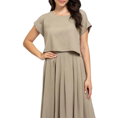 Get ready to elevate your summer wardrobe with August Sky Women’s Short Batwing Solid Top. Crafted from a light and airy fabric, this top is perfect for those warm summer days when you want to look and feel your best. The jewel neck adds a touch of sophistication to the piece, while the batwing sleeves create a flowing and feminine silhouette. Whether you’re heading out for a day at the beach or meeting up with friends for brunch, this crop top is the perfect choice. It’s both comfortable and stylish, with a versatile design that can be dressed up or down depending on the occasion.