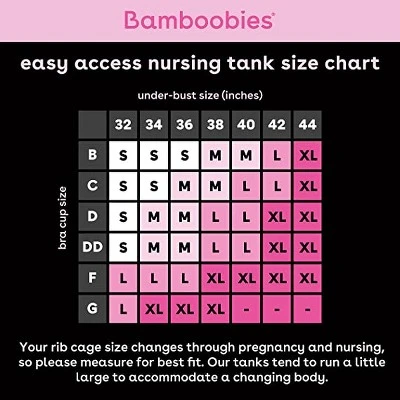 Made from the ultra-soft rayon made from rayon viscose fabric moms know and love, bamboobies Easy Access Yoga Tank is a new mom wardrobe essential. No bulky nursing clips or exposed skin, simply pull the fabric across for easy access breastfeeding. With a strappy back and loose fit, this tank is stylish, versatile and adaptable to your changing body. Plus – the thick straps conceal the nursing clips from your bra. Wear it out and about with your favorite jeans or lounging around in yoga pants.