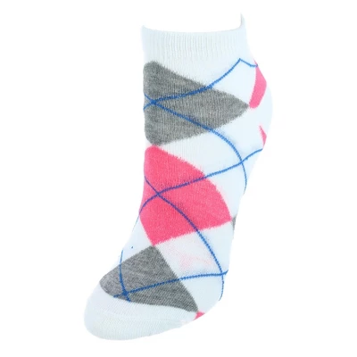 This great value pack of 6 pairs of low-cut socks feature great argyle designs with fun and bright color combos to match all your outfits. Just the right amount of spandex for a great fit every time. Great for work or play time. Run errands, play golf and tennis, work out or lounge around the house taking the break you deserve. Fashionable designs, fit and colors at a great price.