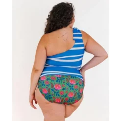 This one-shoulder swimsuit is a truly elegant choice. It boasts a tasteful attached bow that adds a touch of sophistication to your beach ensemble. The subtle ruching on the sides not only enhances the style but also provides a flattering fit. What makes this swimsuit exceptional is the fantastic support it offers, complemented by the convenience of a built-in bra. Importantly, it’s mastectomy-friendly, accommodating the unique needs of those who have undergone a mastectomy procedure. With this swimsuit, you can enjoy both style and comfort, making it a standout choice for a wide range of beach and pool activities.