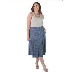 Elevate your style with the Navy Polka Dot Pleated Pocket Midi Skirt from 24seven Comfort Apparel. This flirty and feminine skirt features a playful navy polka dot print on a soft and flowy fabric that will flatter your figure. The skirt has a classic midi length cut and is designed with a pleated waist and pockets that add a touch of elegance and practicality. The elastic banded waistband ensures a comfortable fit that will keep you feeling great all day long. Whether youre headed to work or a night out with friends, this skirt will have you looking and feeling your best. The playful polka dot print and flowy fabric make it perfect for any occasion.