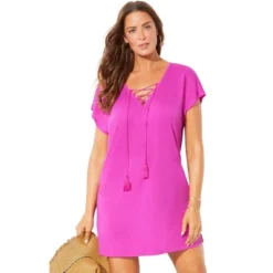 Meet the lovely Esme! This lightweight textured cover up dress has an easy, relaxed fit and tassel lace-up neckline for a slightly boho vibe. Wear this breezy beauty over your favorite swimsuit as you head to and from the beach or pool. It’s cute enough to wear to happy hour, too!