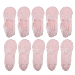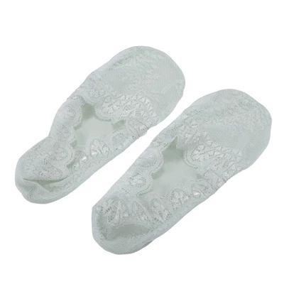 Item Function: 1. Made of highly elastic fiber material which is of high contraction, the breathable elastic cuff tab locks tightly around the heel to prevent socks from slipping off. 2. The socks are designed for easy movement and the lace design is classic and elegant. With the anti-slip function, the socks are suitable for multi-scene use. 3. Lightweight and soft material for improved underfoot comfort. Please Note: One size fits most women. Specifictions: Product Name: Lace Socks, Material: Nylon, Quantity: 5 Pairs, Package List : 5 Pairs Invisible Lace Socks.
