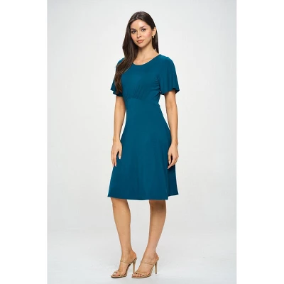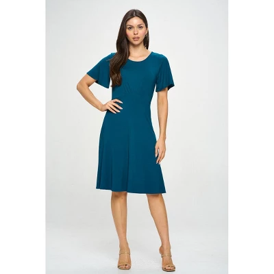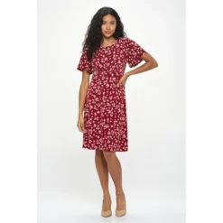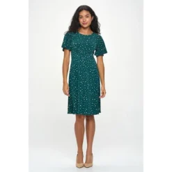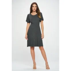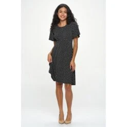 The Elli Short sleeve dress is a ward drobe must-have. This versatile knit dress is comfortable, breathable and on top of if all it’s also practical. Made in USA. Material – 96% Polyesterl 4% Spandex. Machine washable.