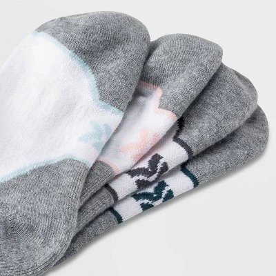 No-show athletic socks made from a breathable, moisture-wicking fabric with ventilating mesh to provide your feet with cool comfort during a range of athletic activities. The socks are thoughtfully designed with arch support, targeted zone cushioning in the high-impact areas, and a reinforced heel and toe to complete the functional fit and comfortable feel for any active day. Plus, the solid gray-and-white hues with subtle printed accents add a sporty touch to your athleisure look.