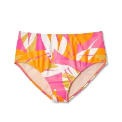 from Kona Sol™. Made from soft fabric with full lining plus a touch of spandex for stretchy comfort, this pull-on bikini bottom is designed with a high-rise cut. Featuring bright multicolored abstract print, it makes an easy pairing with your favorite bright-colored solid or printed bikini tops.