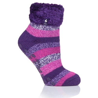 The same warmth and comfort as the ORIGINAL™ Heat Holders® Crew sock, but in a shorter ankle length with cozy turn over cuffs! Ideal for lounging around the home. Includes flame shaped non-slip grippers on the bottom to provide better traction on indoor wood or tiled surfaces. Wrapped in a pretty ribbon that says “Just for you”, these lounge socks make a thoughtful gift!