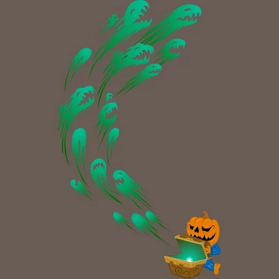 - Release your inner demons with this Halloween design featuring a pumpkin headed kid opening a magical chest letting out spirits of the underworld.