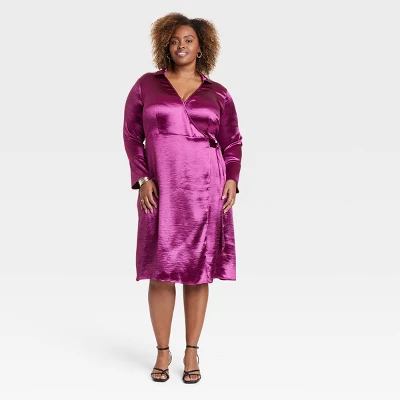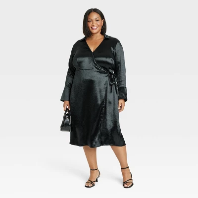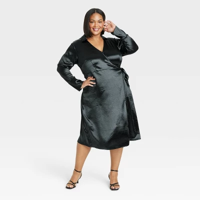 Amp up your summer wardrobe with this Long-Sleeve Midi Wrap dress from Ava & Viv™. This long-sleeve midi dress boasts a flattering V-neckline along with a wrap front and side tie at the waist for a gorgeous fit. Made from midweight satin with subtle shine, this midi wrap dress makes it easy to put together a sleek look for a backyard BBQ, a weekend brunch or just hanging out with friends.
