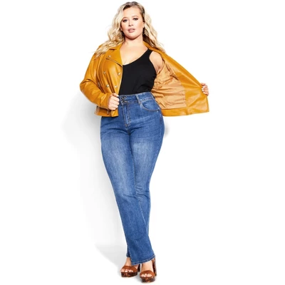 Start your day with a little sweet style in the Megan Jacket. This caramel-toned faux leather jacket is perfect for any look. It’s got a soft feel and chic details like a functional zip-front and double-breasted button feature. PlusBold and fiercely fashionable, no one does plus size fashion like City Chic. Loved around the globe for its diverse range of fashion-forward styles for any occasion. From show-stopping evening gowns to workwear and casualwear, City Chic will take your style to bold new heights. Available in sizes 14-32.