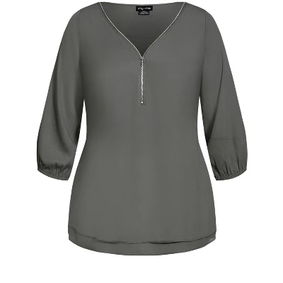 Bring versatility to your everyday wardrobe with the Stylish Fling Elbow Sleeve Top! With lightweight woven fabrication to keep you comfortably chic this top is detailed with a double layer front and workable zip neckline.nBold and fiercely fashionable no one does plus size fashion like City Chic. Loved around the globe for its diverse range of fashion-forward styles for any occasion. From show-stopping evening gowns to workwear and casualwear City Chic will take your style to bold new heights. Available in sizes 14-32.