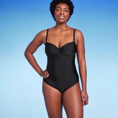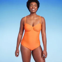 Hang out at the beach in fashion-forward style wearing this Shirred Underwire Medium Coverage One-Piece Swimsuit from Kona Sol™. Made from stretchy fabric for ease of movement, this one-piece medium coverage swimsuit features a supportive underwire design with shirred detailing on front for added style. The breezy back with adjustable straps and a hook-and-loop fastener makes it easy to find just the right fit. Plus, the removable cups offer customizable coverage.