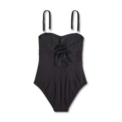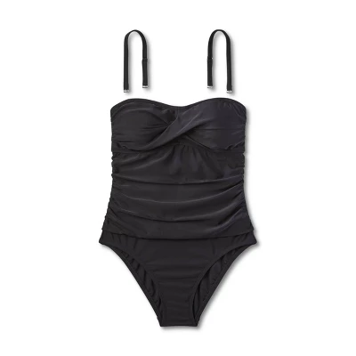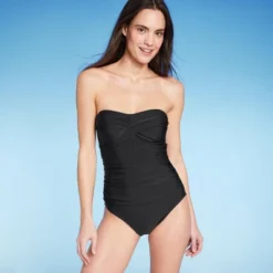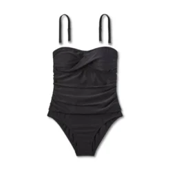 This Twist-Front Bandeau Classic One-Piece Swimsuit with Tummy Control from Kona Sol™ is made from soft fabric with added spandex for stretchy comfort. The sleeveless swimsuit fashioned in a classic bandeau silhouette in black will have you standing out from the crowd. The twist-front accent adds style, the tummy control feature gives you a flattering look, and the crisscross back ties with keyhole give you an ideal fit every time. Plus, you can choose the level of comfort thanks to the removable cups and the optional shoulder straps.