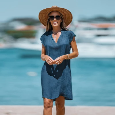 Update your swim closet with the V-Neck Short Sleeve Mini Cover-Up Dress from Cupshe. This V-neck short-sleeved mini cover-up dress is the perfect addition to your beach day look! Product code: CAA07B3D058TT/CAA07B3D058RR* Please advise that the material is a little sheer.Model Wearing Size: SHeight: 5‘6″ in168 cmBust: 34 in86 cmWaist: 25 in63 cmHips: 30 in 76 cm